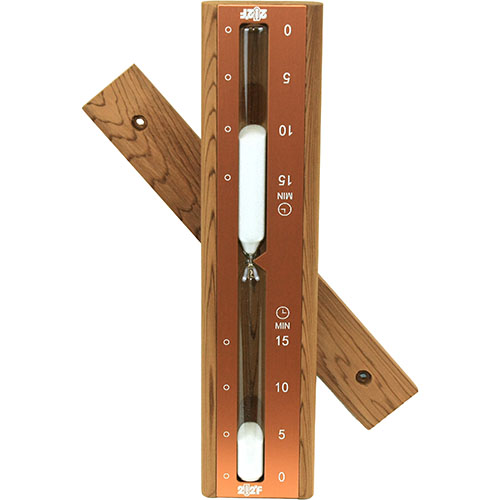 Благородный оттенок медной панели в сочетании с белоснежным песком превращает этот прибор в эффектное украшение современной сауны. Контрастная шкала с отметками на 5, 10 и 15 минут позволяет легко контролировать время захода, не отвлекаясь от глубокого расслабления. Сочетание металла, стекла и натурального дерева создаёт стильный визуальный образ, который подчёркивает внимание владельца к деталям интерьера.