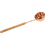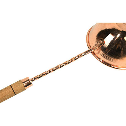 Медный ковш с точеной деревянной ручкой, предназначен для поливания каменки. Металл не подвержен коррозии, долговечен, не изменяет своих физических и эстетических характеристик на протяжении длительного времени. Деревянная ручка предотвращает контакт рук с горячим металлом, а её длина позволяет держать их на безопасном расстоянии от источника пара.