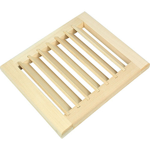 Решетка предназначена для предотвращения попадания внутрь банного помещения различных насекомых и грызунов, посторонних предметов через вентиляционные отверстия. При это она не препятствует естественной циркуляции воздуха: поступлению кислорода извне и не сдерживает вывод углекислого газа. Древесина липы, из которой изготовлена решетка, устойчива к резким перепадам температуры и влажности, и потому является идеальной для использования в помещениях бань или саун. Кроме этого, материал безопасный - прикосновение к нему не угрожает ожогом; и эстетичный - не темнеет со временем, сохраняет отличный внешний вид.