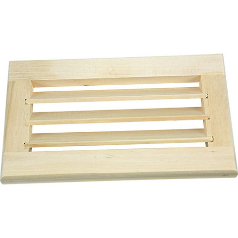 Решетка предназначена для оснащения вентиляционных отверстий в банях и саунах с цель предотвращения проникновения внутрь помещений крупных насекомых, грызунов и попадания посторонних предметов. При этом она не мешает естественной и необходимой циркуляции воздуха, не препятствует поступлению воздуха и не сдерживает вывод углекислого газа. Изготовлена из древесины липы - наилучшего материала для эксплуатации в условиях высокой влажности и при больших перепадах температуры, который является традиционным в отделке банных помещений. Древесина липы обладает низкой теплопроводностью, прикосновение к ней не грозит ожогом. Со временем не темнеет, сохраняя хороший внешний вид.