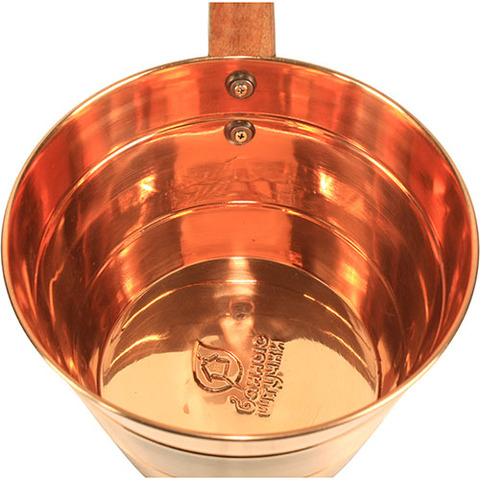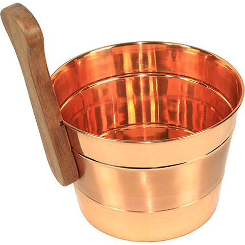 Элегантная медная шайка для банных процедур. Она имеет оптимальный объём 4 литра, устойчивую форму корпуса. Изящная деревянная ручка удобна для хвата, приятна на ощупь, в условиях жаркой парильни она не нагревается до высокой температуры и потому полностью безопасна. Шайка подойдет для мытья, обливания, приготовления ароматических настоев, запарок. Металл не подвержен коррозии под воздействием влаги, нейтрален в химическом отношении к различным косметическим средствам. Главными достоинствами данного изделия можно назвать стильный дизайн, надежность и долговечность.