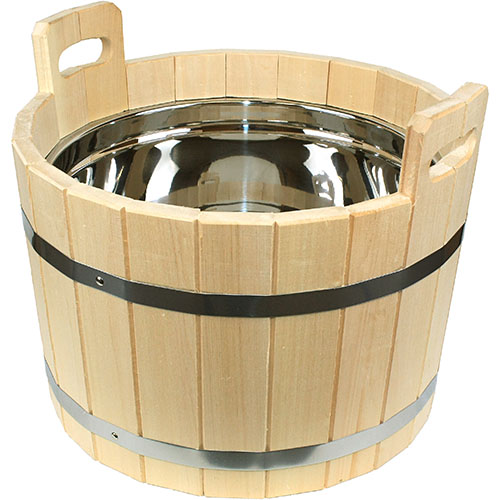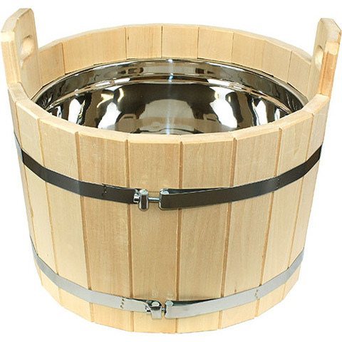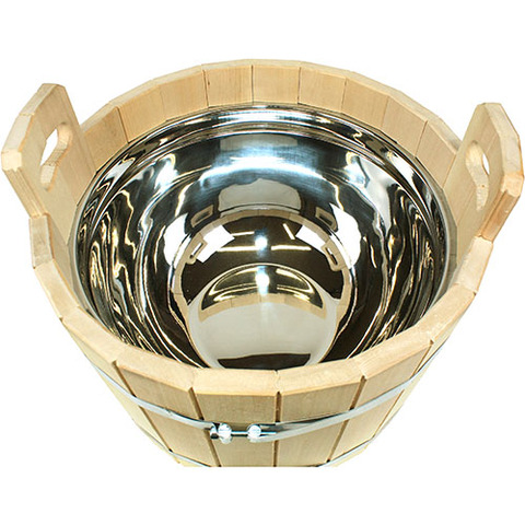 Главным преимуществом данной модели является внутренняя чаша из высококачественной нержавеющей стали. В отличие от чисто деревянных изделий, такая шайка никогда не рассохнется от длительного простоя и не даст течь. Металлическая вставка значительно упрощает уход за аксессуаром: она легко моется, не впитывает запахи эфирных масел и препятствует размножению бактерий в структуре дерева, что делает использование изделия максимально гигиеничным.
