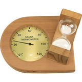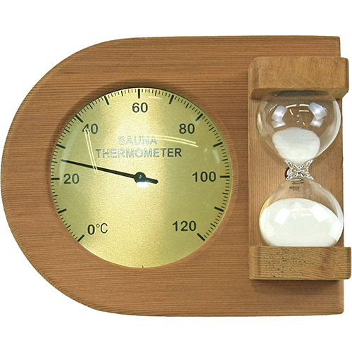 Термометр с песочными часами, изготовленный из отборного канадского кедра, представляет собой воплощение роскоши и функциональности в интерьере бани. При нагревании благородная древесина кедра наполняет парную тонким ароматом, создавая оздоравливающую атмосферу хвойного леса. Золотистый циферблат в сочетании с контрастными чёрными стрелками обеспечивает превосходную видимость показателей даже при высокой влажности, позволяя легко контролировать температурный режим.