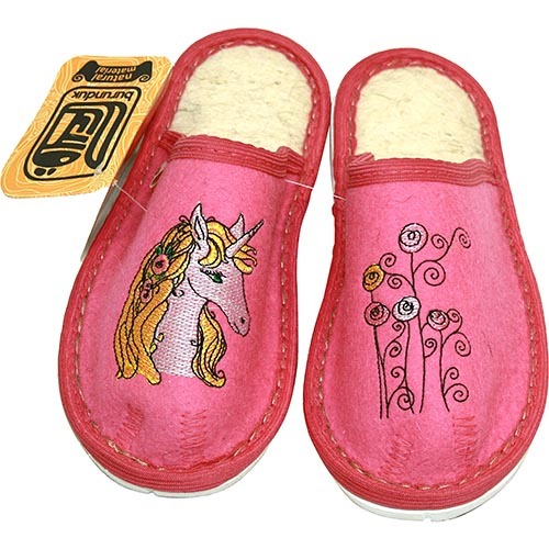 Яркие тапочки с цветной вышивкой вызовут самые приятные эмоции у вашего ребенка и подарят ему тепло и уют. Мягкий войлок приятен на ощупь, нежно согревает и слегка массирует стопу, не вызывая раздражения кожи. Подошва из пористого материла не скользит на мокром полу и оберегает ребенка от падения.