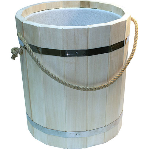 Большое банное ведро понадобится для хранения и переноски воды. Изготовлено из липы, оно гармонично впишется в банный интерьер и будет хорошо сочетаться с другой утварью. Пластиковая вставка исключит протекание, ведром можно пользоваться даже длительного простоя. Верёвка из натуральных растительных волокон удобна для переноски, она не выскользнет их мокрых и мыльных рук, не будет нагреваться в жарком помещении.